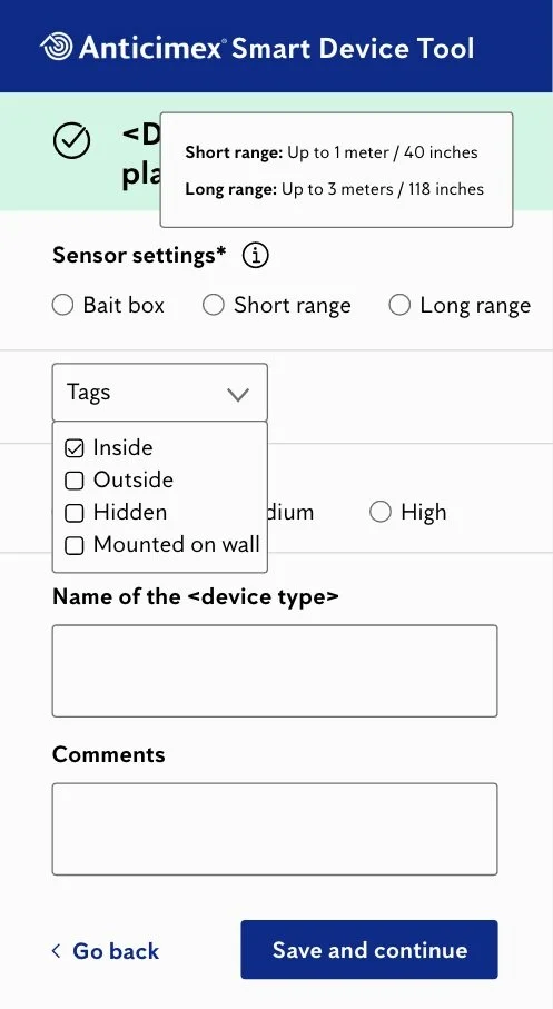 To create a better user experience for technicians who are installing and handling digital traps. The scope included creating a design in order for the technicians to install, add and remove devices for a customer site.